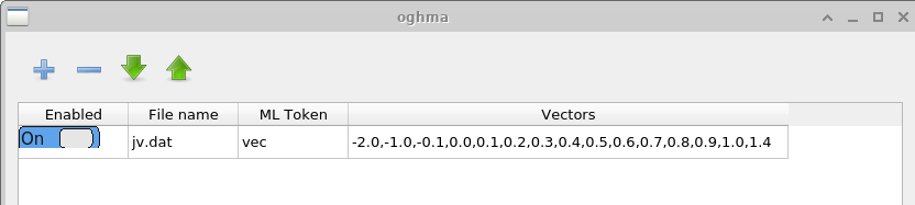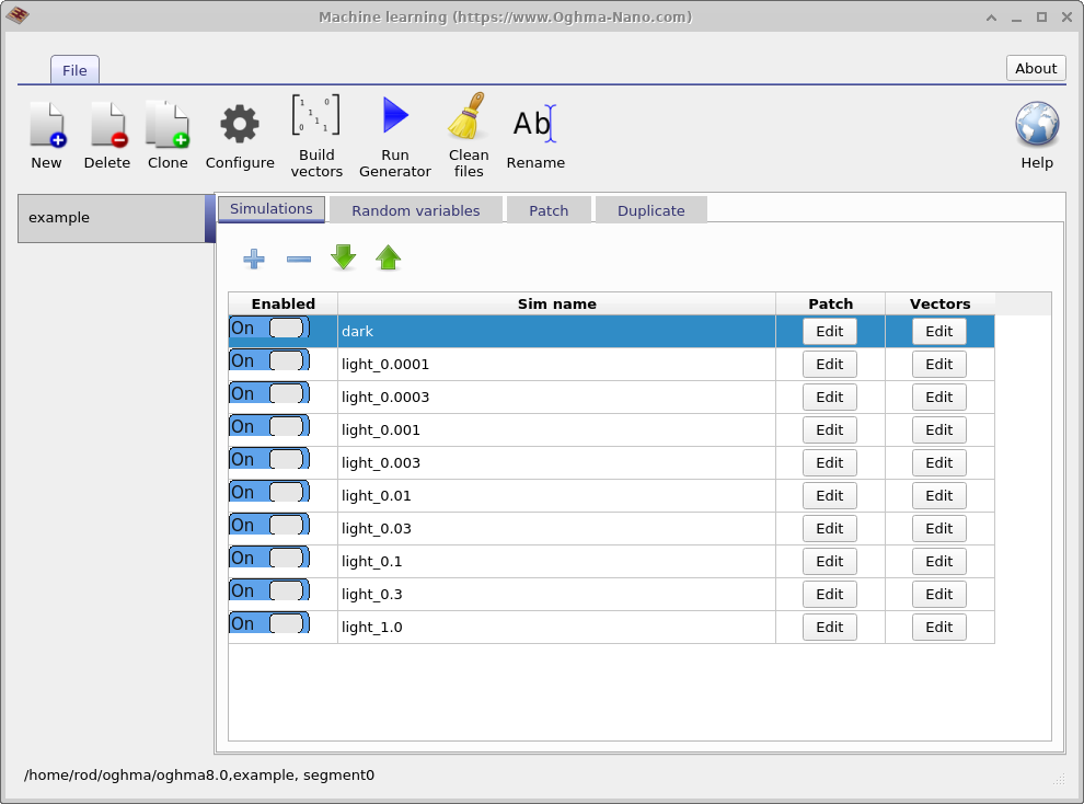 In the above example we only have three archives but in a normal simulation run one would have up to 200 archives each with 200 simulations in each. Once the simulations have been performed one needs to convert these raw OghmaNano simulations into a vectors file for the machine learning algorithm. If one clicks on the Build vectors icon in the main machine learning window 18.2, OghamNano will open each virtual simulation and compile the it to a vectors file. The vectors file can be seen in Figure 18.11.