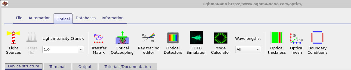 In OghmaNano, optical detectors are used to measure light as it propagates through an optical system. Detectors are defined using the Optical Detectors Editor, which can be opened from the Optical ribbon in the main window (see Figure ??).